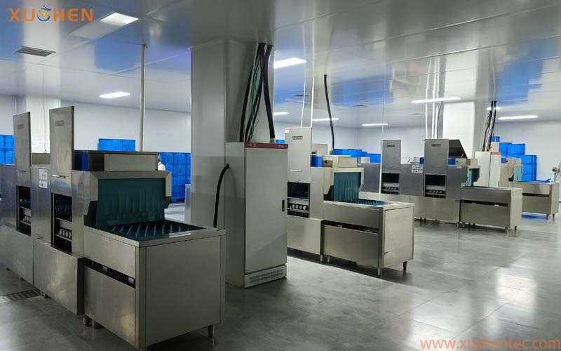 眾所周知,央廚使用的多半是分餐制,廚具為分格餐盒或餐盤,加小碗,筷子、勺子,餐具很多是不銹鋼和密胺餐具。央廚餐具的清洗量很大,餐具使用周轉(zhuǎn)量也大,清洗量有的達(dá)8-10萬套/天。所以人工清洗浪費(fèi)時(shí)間不說,還特別的浪費(fèi)水資源,浪費(fèi)人工成本,不利于長久發(fā)展需求。從清洗專業(yè)的角度來說,旭申央廚洗碗機(jī)能夠幫客戶解決諸多問題,快捷、干凈衛(wèi)生、節(jié)能環(huán)保統(tǒng)統(tǒng)可以滿足。